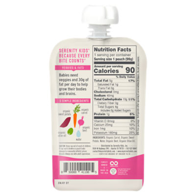 Babies need protein and healthy fats to grow their brains and bodies and no current baby food included these essential macronutrients. The total number of containers affected by this recall is 23388. Serenity Kids 6 Months Certified Organic Baby Food Pouches Veggie Puree No Sugary Fruits or Added Sugar Allergen Free 35 Ounce BPA-Free Pouch Variety Pack 8 Count.